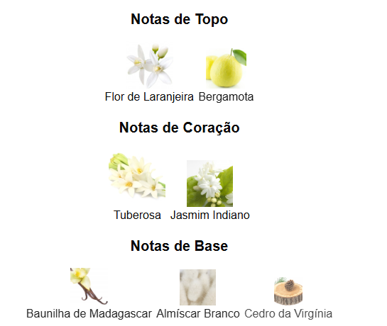 Notas de topo: Bergamota da Calábria + Flor de Laranjeira do Egito.