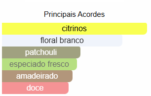 As notas de topo são: Bergamota da Calábria e Bergamota. A nota de coração é Flor de Laranjeira Tunisiana. As notas de fundo são: Ambrofix™ e Patchouli.
